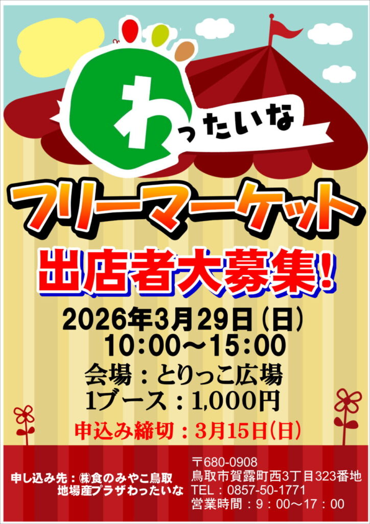 3月29日(日)にわったいな主催フリーマーケットを開催いたします!